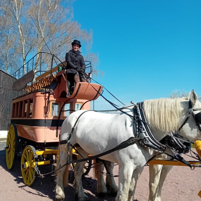 Poursuivons notre voyage dans le temps, en embarquant dans une charrette d'époque tractée par des chevaux de race boulonnaise et du Nord.